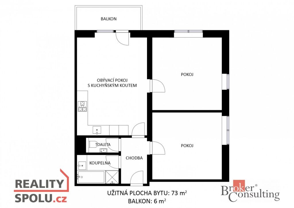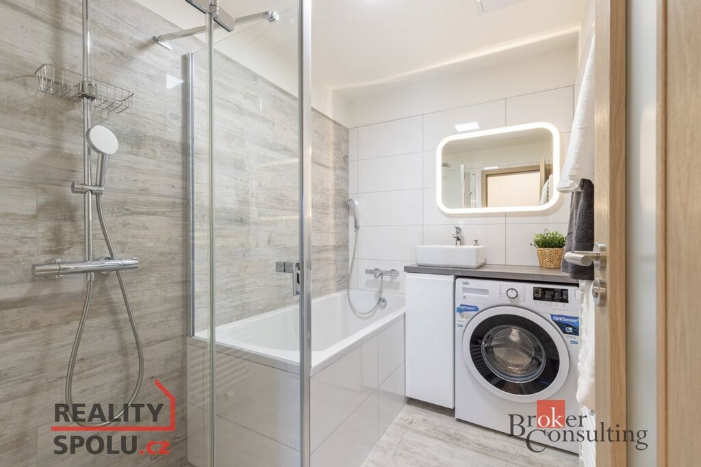 Byt se nachází ve vyvýšeném přízemí bytového domu a nabízí praktické a moderní dispoziční řešení, které poskytuje dostatek prostoru pro rodinu i pár. Díky třem samostatným místnostem byt skýtá řadu možností využití. Obývací pokoj s kuchyňským koutem doplňuje dekorativní betonová stěrka na stěně, která prostoru dodává styl a osobitý charakter, takže nepůsobí jen jako „čistě bílý byt“. Je prostorný, prosvětlený a s přímým vstupem na zastřešený balkon o velikosti 6 m², ideální pro ranní kávu nebo večerní posezení. V koupelně potěší vana i sprchový kout, takže si každý může dopřát to, co má rád.