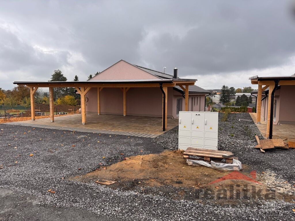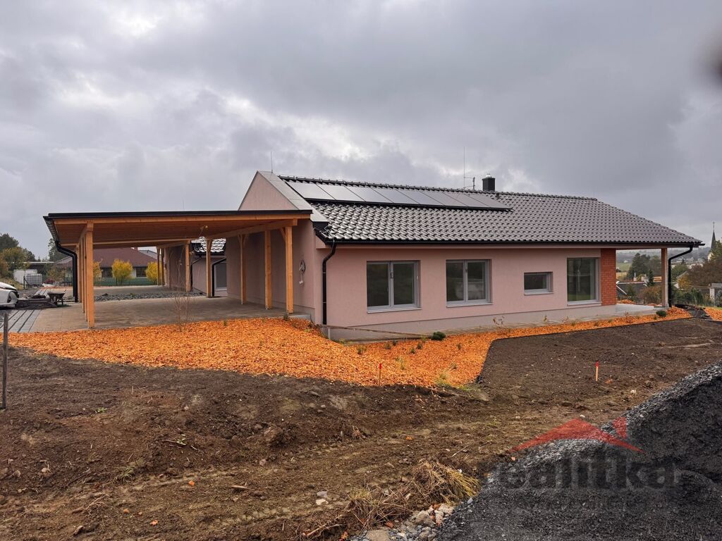 Jedná se o nízkoenergetický přízemní dům o celkové ploše 103m2 na pozemku 774m2 s krytým parkovacím stáním a zahradou. Nemovitost splňuje moderní nároky na komfortní a úsporné bydlení. Vstupní chodba poskytuje přístup jak k hlavnímu vchodu do bytu, tak na samostatné WC a průchozí sprchový kout. Z chodby jsou dále vstupy do jednotlivých neprůchozích pokojů, prostorné šatny, koupelny s vanou, WC, sprchovým koutem a do prostorného obývacího pokoje s krbovými kamny, klimatizací a s plně vybavenou kuchyňskou linkou. Z obývací části vede vstup na terasu s krásným výhledem a přístupem na zahradu.