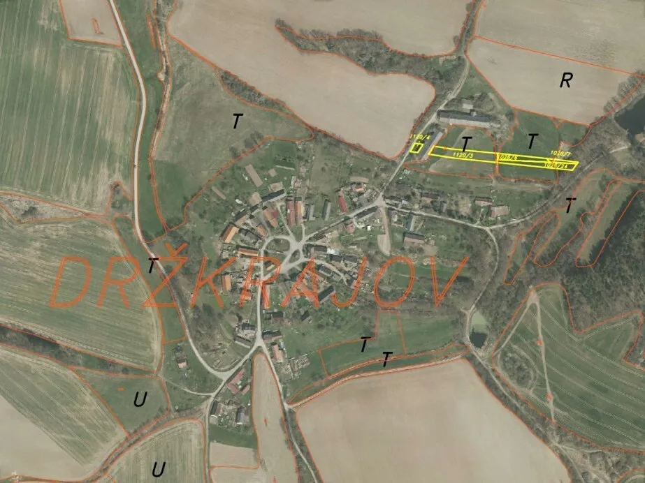 Předmětem dražby jsou pozemky o celkové výměře 2 817 m2 v malé vísce Držkrajov, část