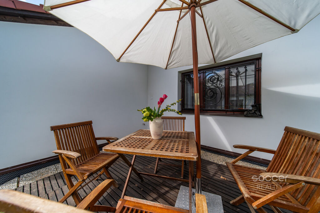 Velmi hezky udržovaná zahrada vám poskytne soukromí, můžete si zde zapinkat třeba badminton, zacvičit si jógu nebo jen tak posedět v trávě a večer se zasnít na terase pod hvězdami nebo na lavičce chráněné korunou vzrostlého ořešáku.
