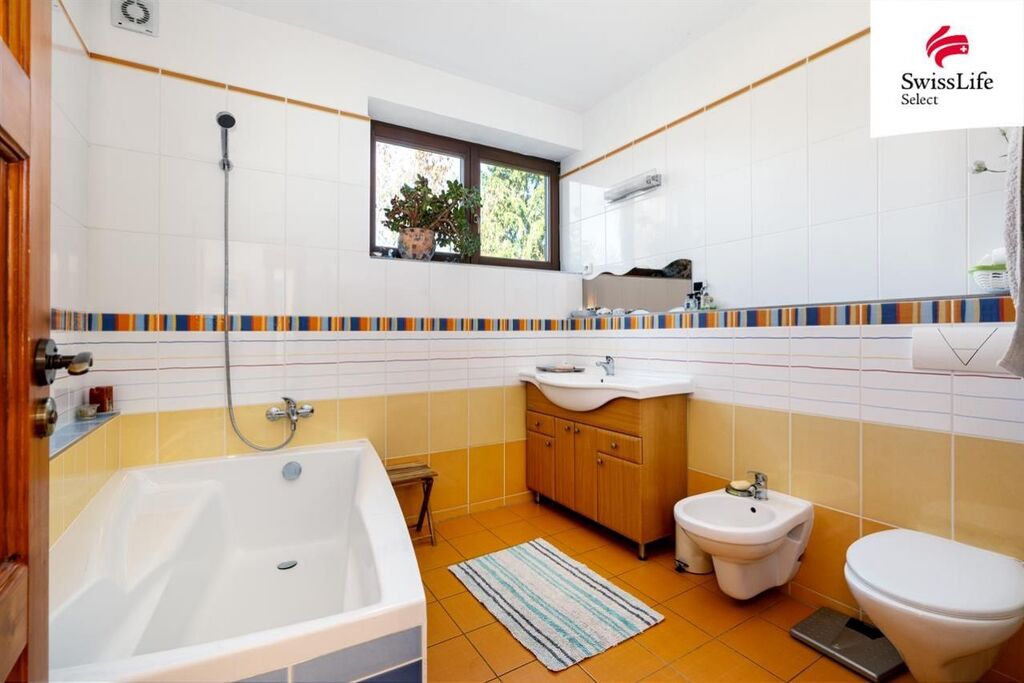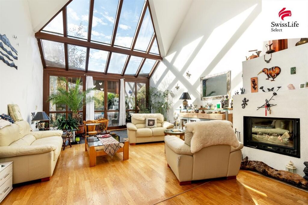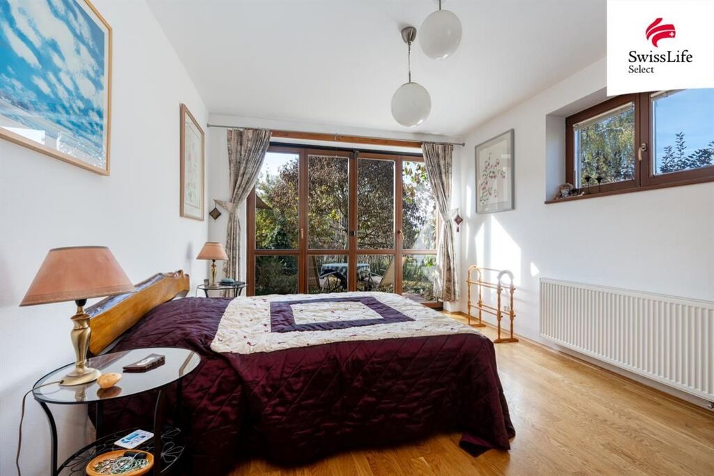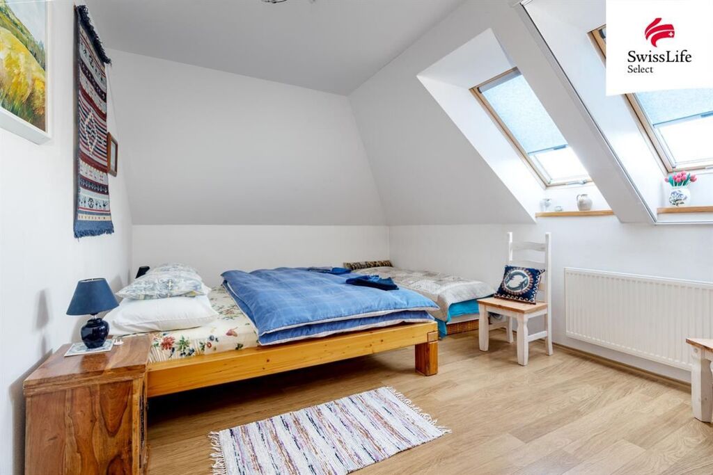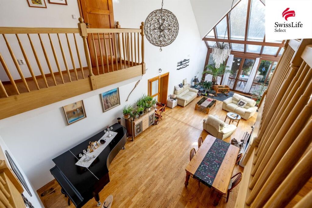 Uvnitř domu vás přivítá příjemná atmosféra, promyšlený interiér a více než dostatek přirozeného světla. Celé přízemí je kompletně bezbariérové. Dispozice navržená panem ing. arch. Milanem Šindlerem zahrnuje prostorný centrální obývací pokoj s částečně proskleným stropem a s francouzským oknem vedoucím na zastíněnou terasu, kuchyň se spíží, s linkou z masivu a s venkovním útulným posezením pro dva, dále tři samostatné ložnice s koupelnami, tři pokoje (hudebna, pracovna, technická místnost) a v neposlední řadě vnitřní verandu nad obývacím pokojem proměněnou ve studovnu a čítárnu ideální místo pro chvíle ticha, vůni knih a klidné večery. V domě se dále ještě nachází velká vstupní hala, šatna, čtvrtá koupelna (s pračkou, sprchovým koutem a toaletou) a další samostatná toaleta vedle pracovny. Co nemohu ve svém výčtu opomenout, je krásná sauna v prvním patře, vedle které je k dispozici sprchový kout. Půda domu je připravena pro vestavbu, kterou je možné získat další prostory k bydlení.