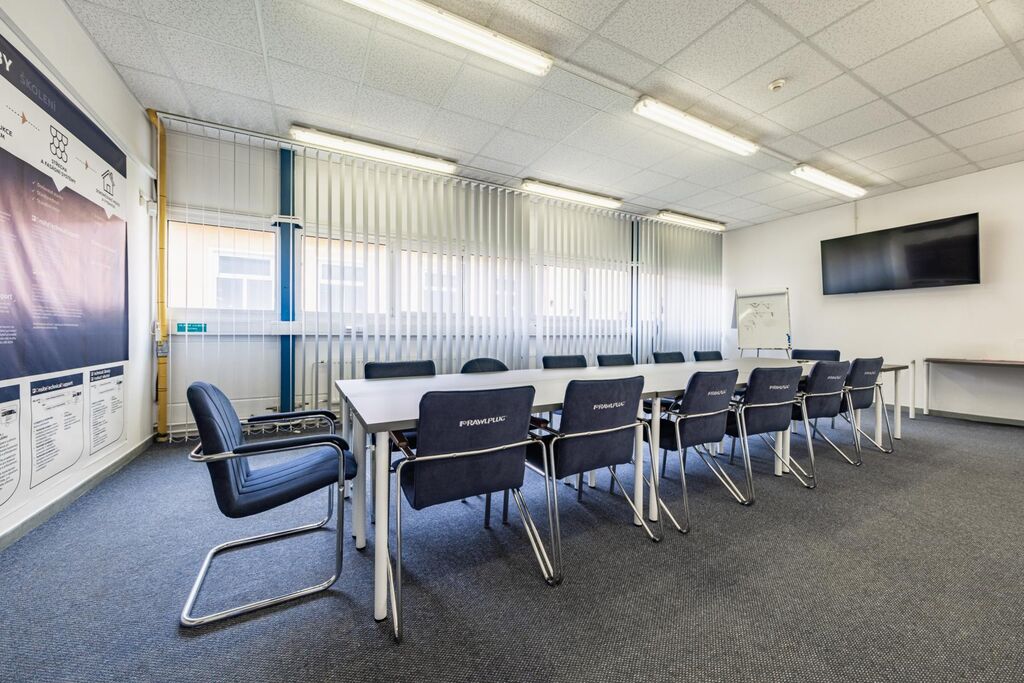 Kanceláře jsou klimatizované a celá budova je napojena na alarm. Parkovaní pro šest automobilů je v ceně nájmu, možnost dalších parkovacích míst za příplatek.