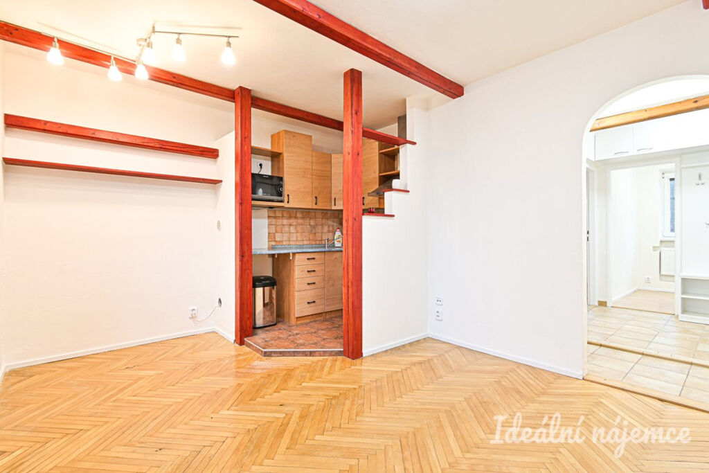 Kuchyně je zařízena kuchyňskou linkou vybavenou spotřebiči jako varná deska, trouba, mikrovlnná trouba a digestoř, zbytek místnosti je bez vybavení. Další dva menší zcela oddělené pokoje jsou taktéž bez vybavení. V chodbě nalezneme vestavěné skříně, které zajišťují dostatek úložného prostoru.