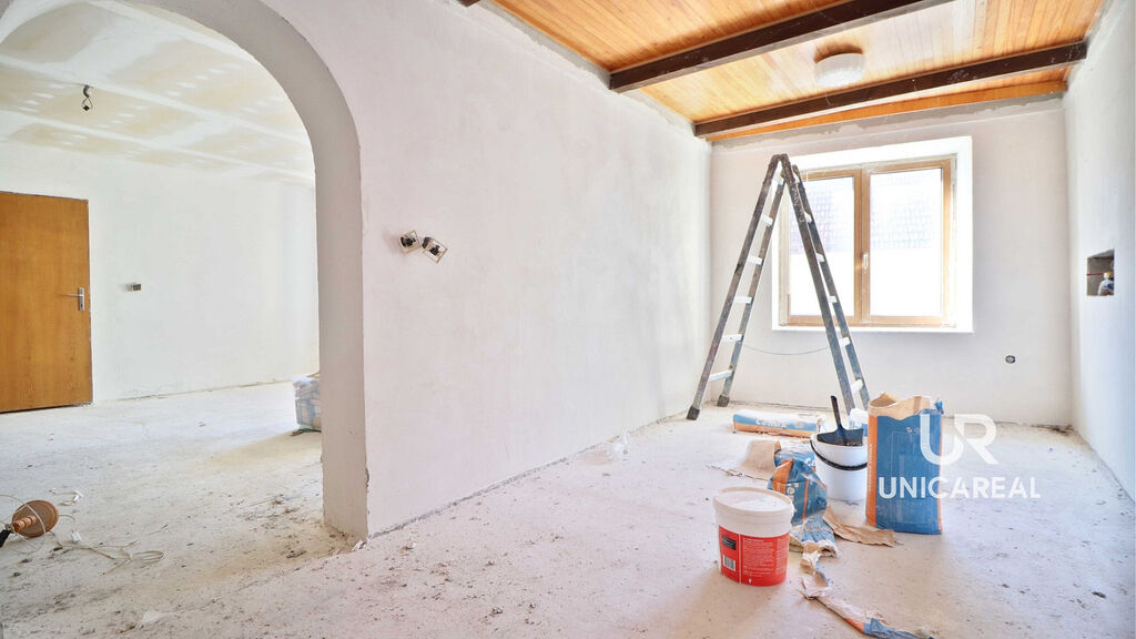 Okna plastová a dřevěná, kastlová. Podlahy betonové. Stropy klenuté a sádrokarton.