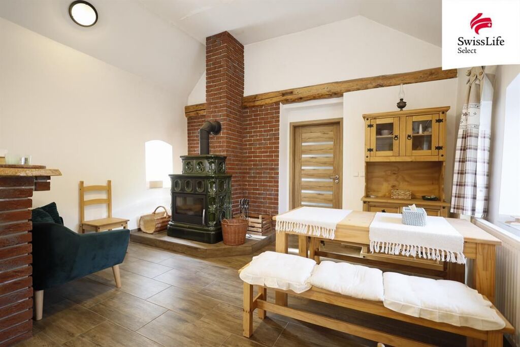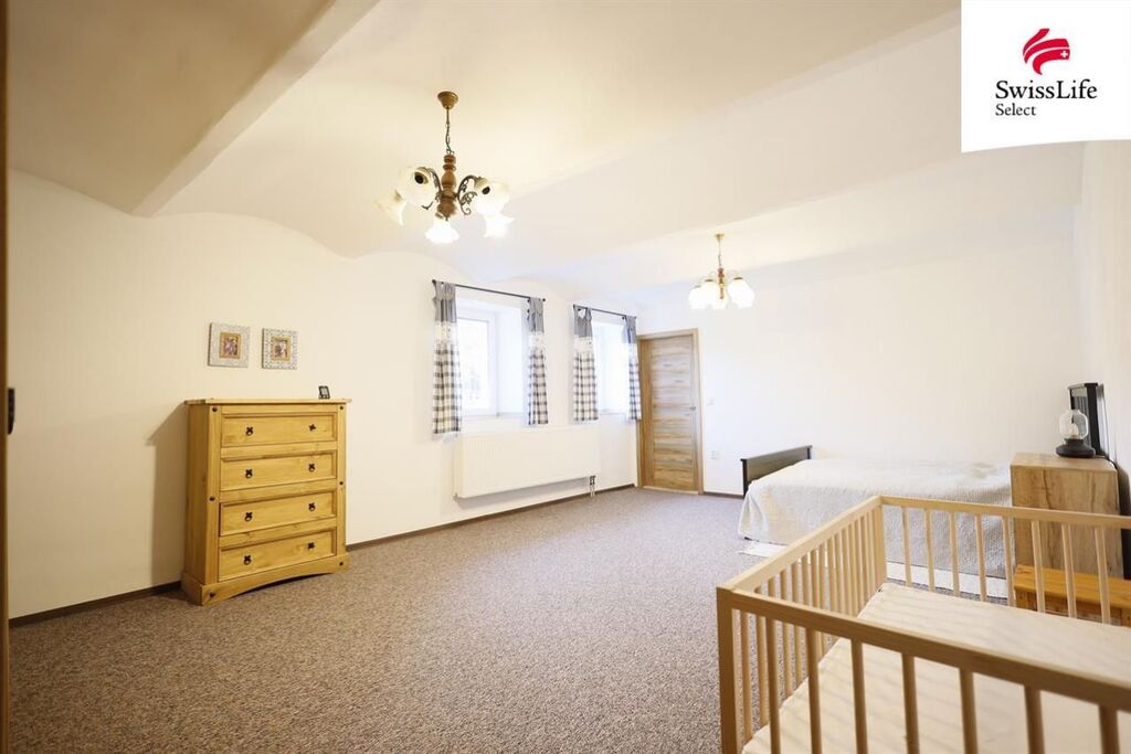 Chalupa nabízí celkem potenciálních cca 140 m užitné plochy. V přízemí jsou na přibližně 80 m obývací pokoj s kuchyňskou linkou, koupelna s WC, bidetem a sprch. koutem, technická komora s el. kotlem a další velká místnost (ložnice). V podkroví je připravených přibližně 60 m plochy k dokončení použitelných jako další obyvatelný prostor.