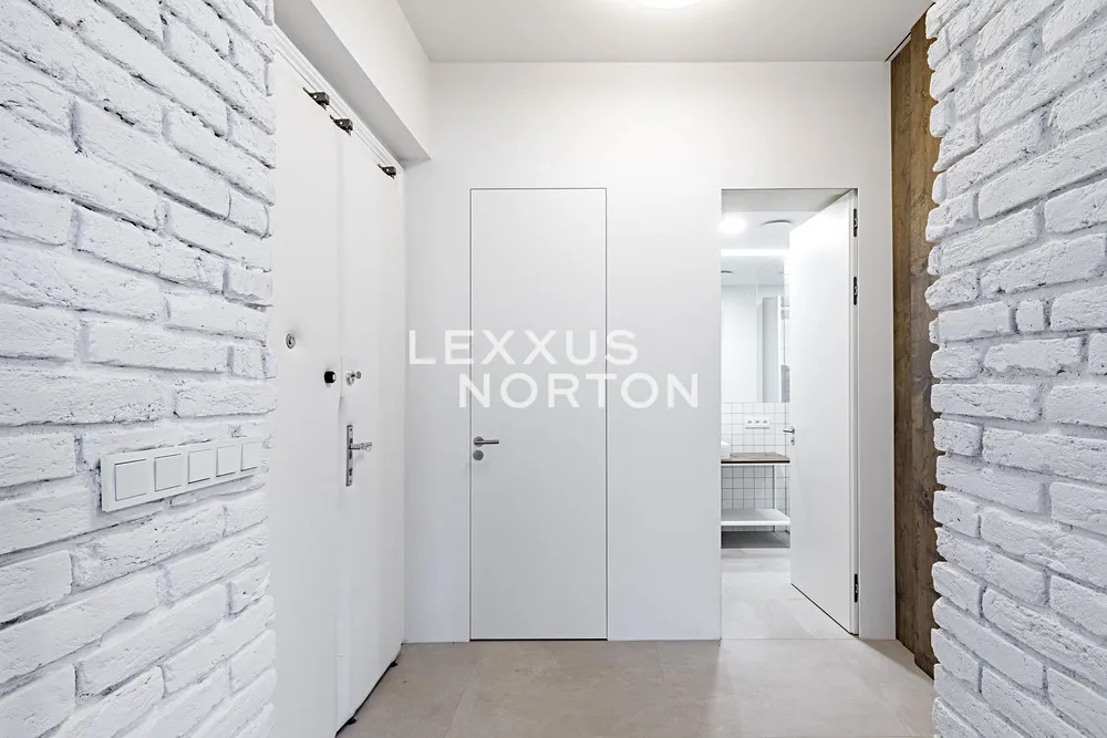 Kuchyňský kout je luxusně vybaven moderními spotřebiči v nejvyšším standardu značky Miele – k dispozici je indukční varná deska, trouba, mikrovlnná trouba, lednice s mrazákem, myčka nádobí a vestavěný kávovar. V koupelně se nachází elegantní walk-in sprcha, ve vstupní chodbě pak vestavěná skříň s policovým systémem a kombinovaná pračka se sušičkou. Ložnice je zařízena vestavěnou skříní a manželskou postelí. V obývacím pokoji se nachází pohodlná sedací souprava a televize. V celém bytě jsou kvalitní parketové podlahy, klimatizace a bezpečnostní systém.