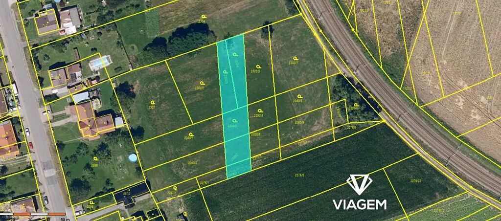 - Parcelní číslo 2300/7 (203 m², 100% podíl, LV 912)
