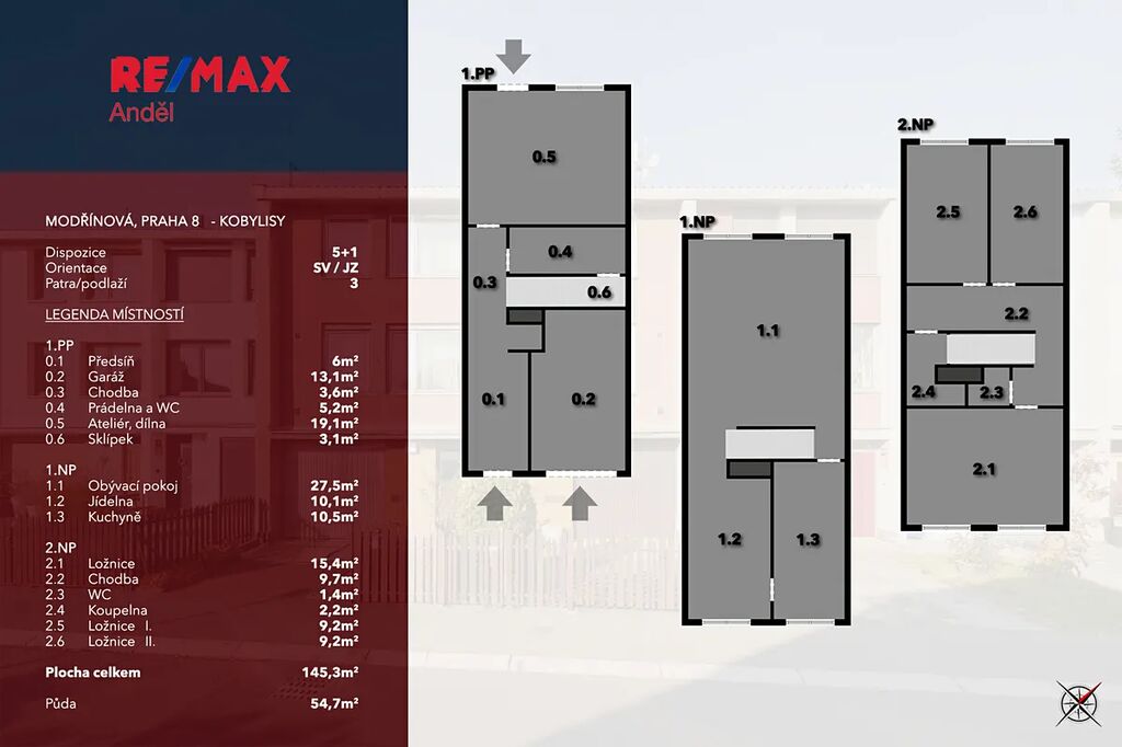 Nabízíme k prodeji pěkný dvougenerační řadový rodinný dům o celkové užitné ploše 145 m², který lze využít jako prostorný dům 5+1, nebo rozdělit na dvě samostatné jednotky (4+1 a 1+kk). Nemovitost se nachází v klidné a žádané části Prahy 8 – Kobylisy, v ulici Modřínová, jen pár kroků od Ďáblického háje a veškeré občanské vybavenosti.