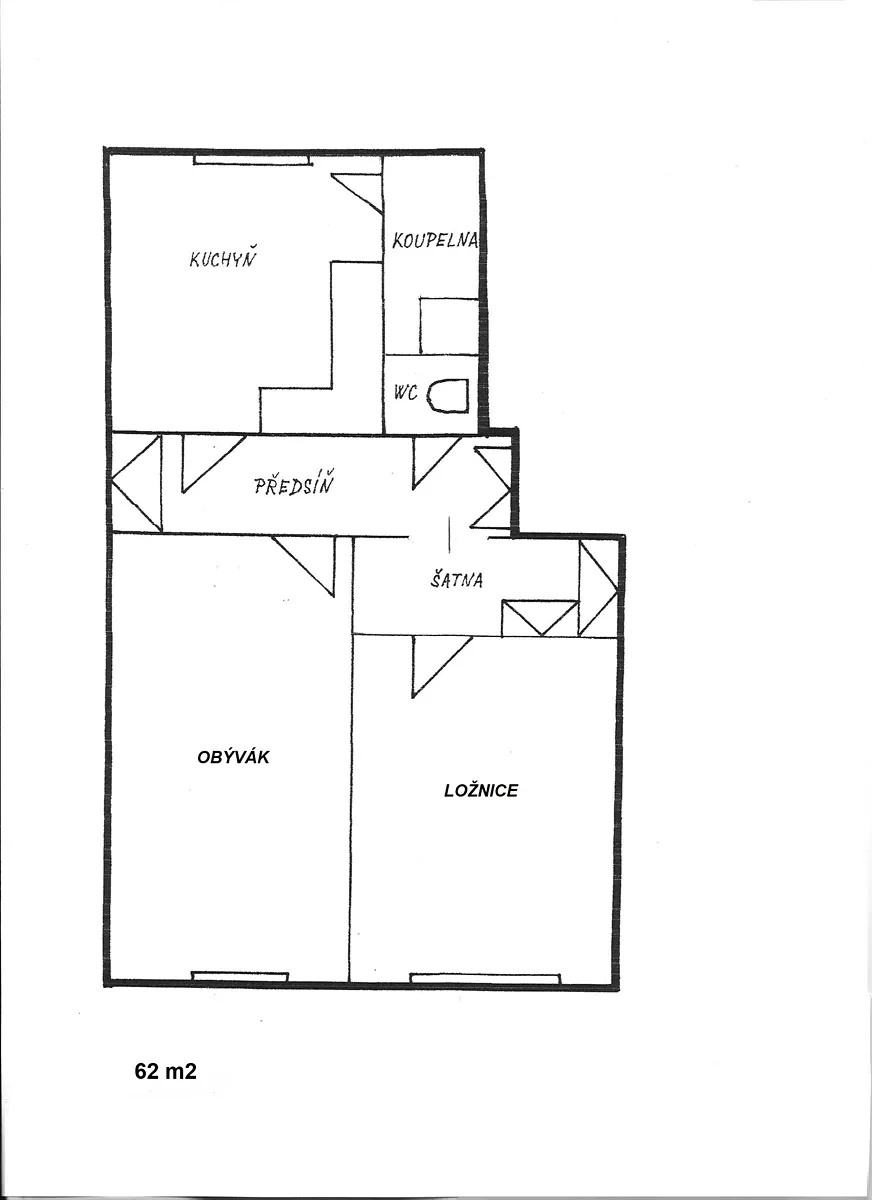 Světlý a prostorný byt 2+1 (62 m2) ve 4. patře cihlového domu v dosahu centra (10 min.) a v těsné blízkosti parku Vítkov.