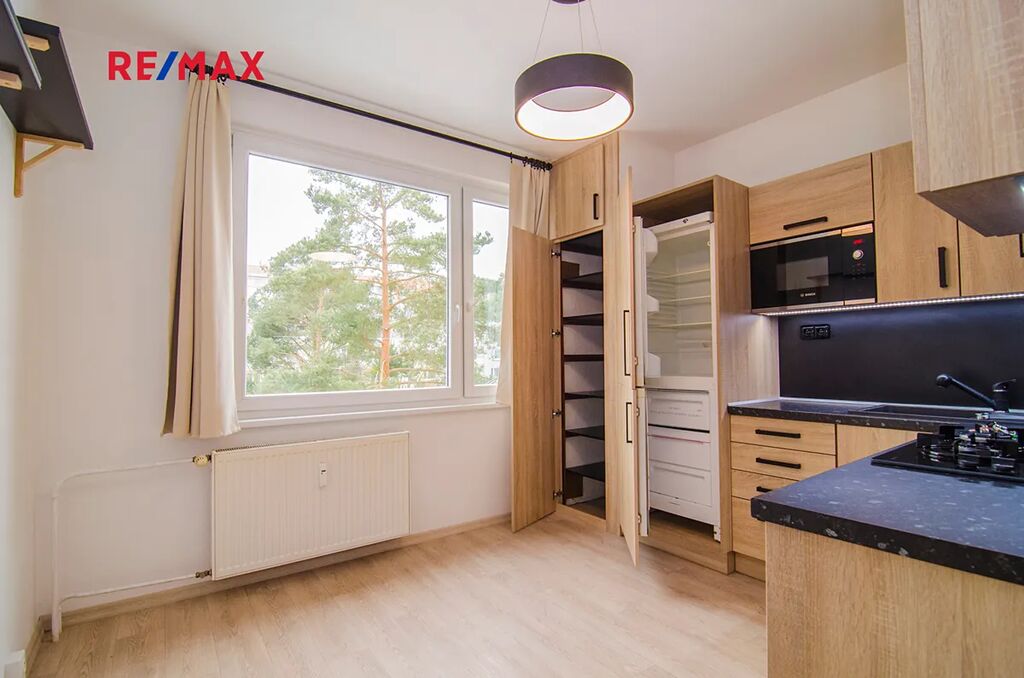 Nájem bytu je poskytován bez kauce. Byt o dispozici 1+1 a velikosti 35,8 m2 je v panelovém domě ve 4.NP, bez výtahu.