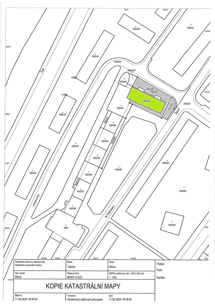 Dále je součástí domu pozemek viz snímek z KN, který nabízí až 20 parkovacích míst pro osobní a užitkové vozy.