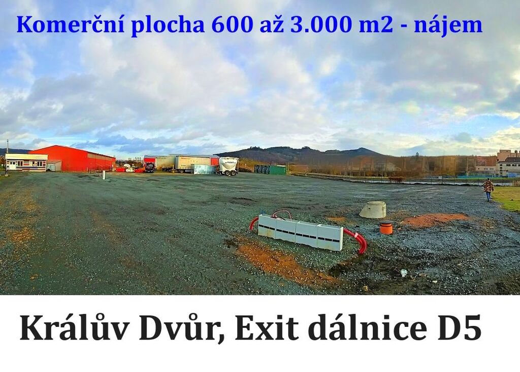 Aktuálně k dispozici 2x cca 1000 + 600 m2 ( popř 2100 m2 ) venkovní rovinná plocha pro komerční využití + další připravované pozemky. Nájezd na pozemek z budované komunikace - viz plánek. Připraveny ing. sítě 220/280V, voda, kanalizace (!)...... Možno k nájmu malá admin. budova, vytvořena ze dvou izolovaných buňek, obsahující zázemí a vodu - barevné foto. Nutno dodělat interiérové úpravy. Na pozemku lze umístit dočasné lehké stavby, KONTEJNERY, plátěné haly, nebo přístřešky. Prostory vhodné na parkování dopravní a stavební techniky, venkovní sklady zařízení a materiálu, jako technický - stavební dvůr, Příjezd bez většího omezení. Nájem /rezervace možná IHNED.