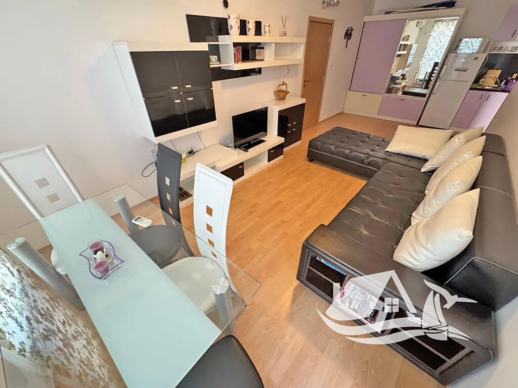 Tento prostorný apartmán o dispozici 2+kk a celkové ploše 67 m² se nachází ve 2. patře moderního rezidenčního komplexu Sunny Day 6 na Slunečném pobřeží. Nabízí světlý obývací pokoj s kuchyňským koutem, samostatnou ložnici, koupelnu s toaletou a balkon s výhledem na zeleň. Interiér působí otevřeně a příjemně – ideální místo pro letní odpočinek, trvalé bydlení či investici s možností stabilního výnosu z pronájmu.