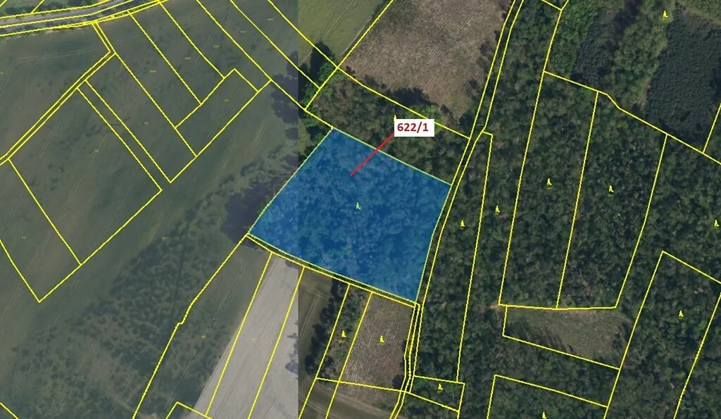 Lesní pozemek o výměře 12 017 m2, parcelní číslo 622/1, podíl 1/1, katastrální území Bernardov, obec Bernardov, obec s rozšířenou působností Kutná Hora, okres Kutná Hora, Středočeský kraj. Po těžbě.