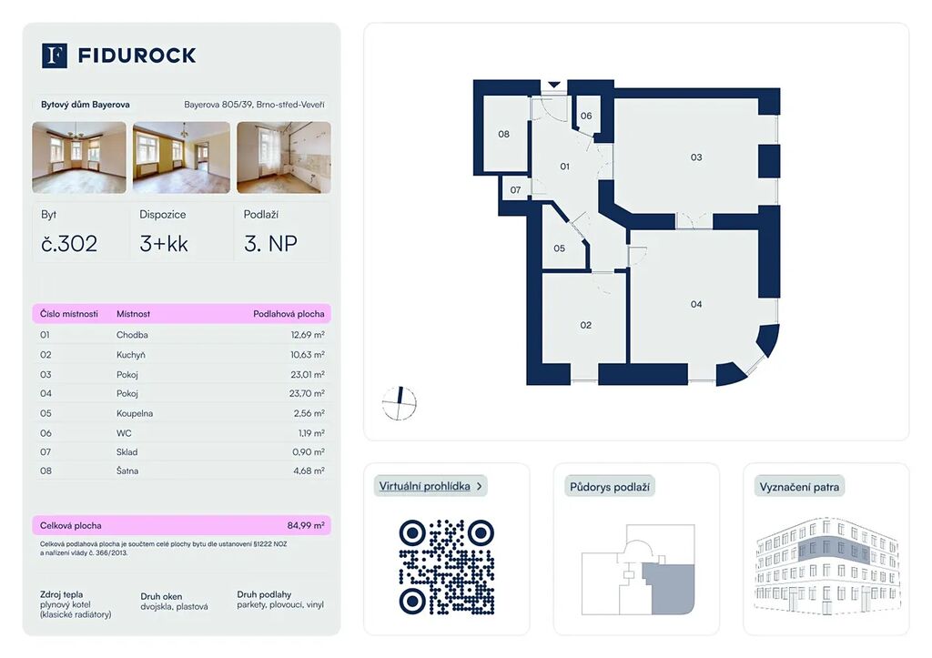 Nabízíme byt v jedné z nejatraktivnějších částí Brna – Veveří, v činžovním domě z 30. let, který právě prochází rozsáhlou modernizací. Jedná se o přímý prodej bez provize.