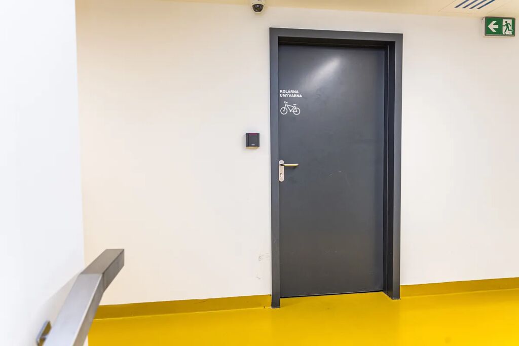 Součástí bytu je také praktická komora s pračkou a dostatkem úložného prostoru pro věci, které chcete mít uklizené z dohledu.