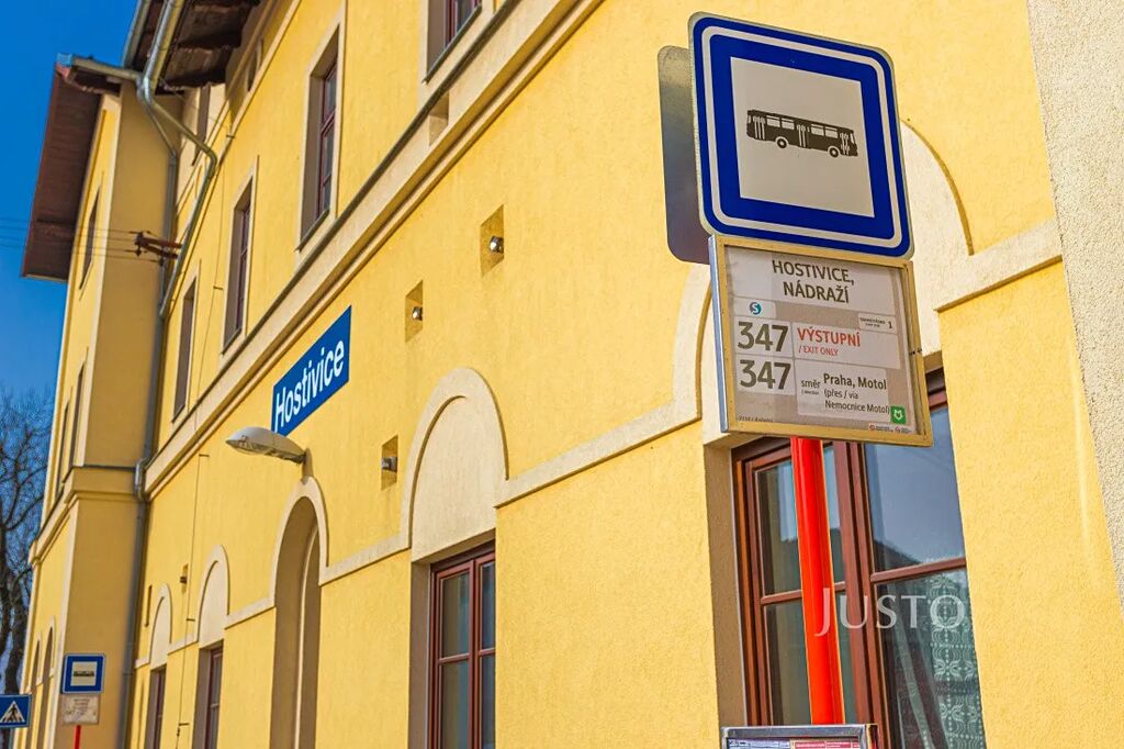 V pochozí vzdálenosti 15 minut je železniční stanice Hostivice, odkud jezdí přímé vlaky směr Praha-Veleslavín (11 minut) s přestupem na metro A.