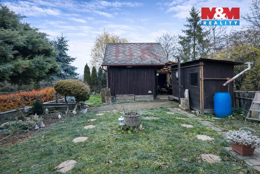 Chata s přivedenou elektřinou a elektrickými kamny má ve spodní části kuchyňskou linku a horní část určenou ke spaní. Součástí pozemku je nově zrekonstruovaná pergola v těsné blízkosti krbu, který je propojený udírnou. V horní části zahrady je menší sklep a 2 dřevěné kůlny na uložení nářadí, které zůstává, včetně sekačky a elektrických nůžek na keře. Díky vrtu s čerpadlem je možné na připravených místech postavit bazén i vířivku. V horkých dnech oceníte sprchový kout uprostřed zahrady. Pitnou vodu lze přinést ze společného vodovodu na čip v docházkové blízkosti. Parkování je možné na pozemku. V případě zájmu můžete kontaktovat realitní makléřku.