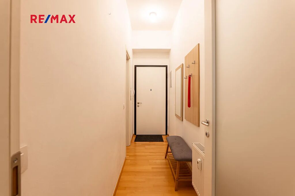 Byt se nachází ve 4. patře s výtahem a nabízí ložnici, obývací pokoj s moderní kuchyňskou linkou se spotřebiči, včetně pračky se sušičkou v koupelně.