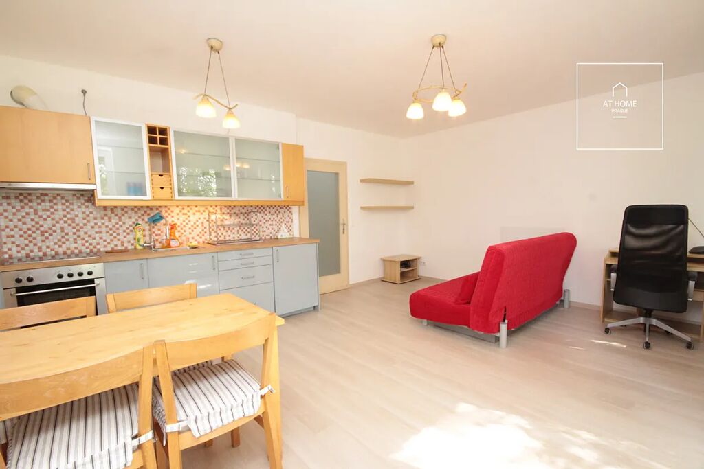 Zařízený, pěkný a prostorný byt 1+kk (garsonka) s terasou ve druhém patře (3.NP) nově postavené rezidence na Praze 10 - Malešice, 2-3 min chůze na zastávku autobusu Malešické náměstí (10 min na Metro A Strašnická). 36m2: předsíň s věstavěnou skříní, pokoj s plně vybaveným kuchyňským koutem (sporák, trouba, základní nádobí), dále je zde jídelní stůl a pracovní kout. Z pokoje vstup na příjemnou terasu s výhledem do zeleně. Koupelna s vanou, WC a pračkou (oproti fotce). V domě je k dispozici sklep. Klidná příjemná lokalita, parkování na parkovišti pro dům. V okolí zeleň, 2 min chůze k botanické zahradě. Záloha na služby a energie 4.000,-Kč. Energetický štítek G (údaj bude aktualizován).