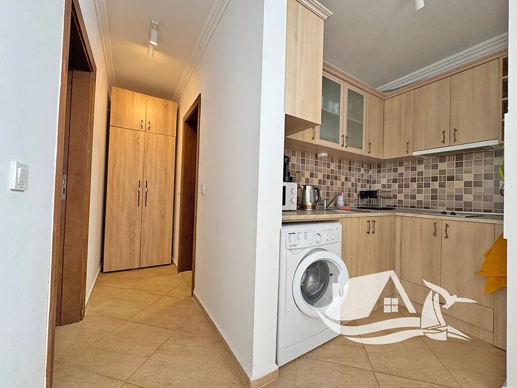 Interiér působí příjemně, svěže a elegantně. Vše je kompletně vybavené a připravené k okamžitému nastěhování – od kvalitního nábytku po vybavenou kuchyň. Stačí přijet, otevřít okna a nechat se unášet klidným rytmem moře.