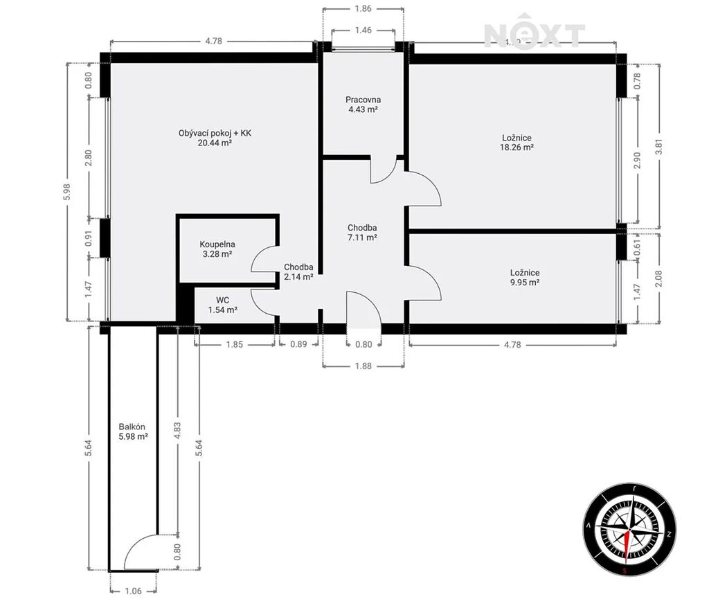 Dispozice dle fotoprezentace. Podlahová plocha bytu 67 m2, lodžie 6 m2.