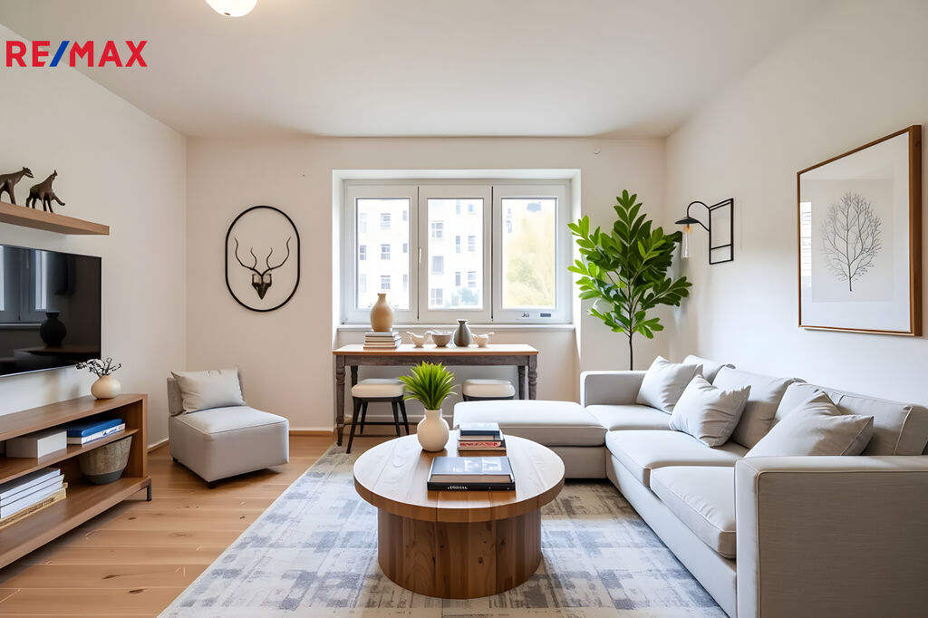 Ve výhradním zastoupení majitele Vám nabízím světlý byt o dispozici 2+1 a podlahové ploše 52,9 m², umístěný v 1. nadzemním podlaží (zvýšené přízemí). K bytu dále náleží dvě sklepní kóje a podíl na uzavřené zahradě o celkové výměře 565 m², která je přístupná pouze obyvatelům domu.