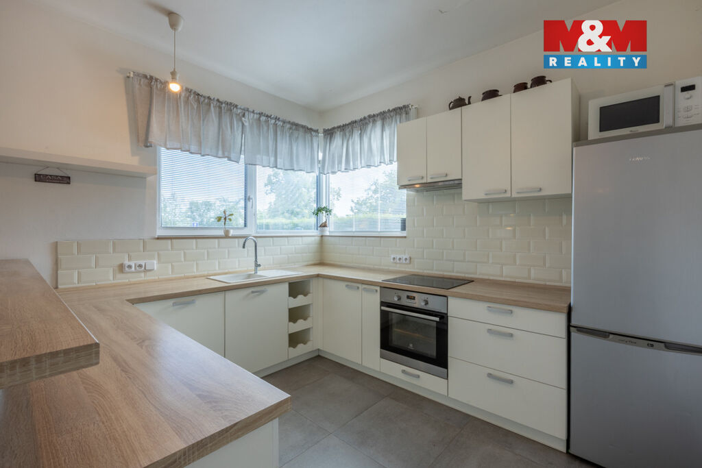Nabízíme k prodeji samostatně stojící rodinný dům v klidné části obce Obora u Loun. Tento dvoupodlažní dům o dispozici 4+KK poskytuje komfortní bydlení s užitnou plochou 155 m². V přízemí se nachází prostorný obývací pokoj s kuchyňským koutem, toaleta, technická místnost a praktický kumbál. Podlahové vytápění v 1. NP zajišťuje příjemné teplo. V patře jsou dva pokoje s balkonem, jeden bez balkonu, šatna a koupelna s podlahovým vytápěním. Dům je orientován na jih, což zaručuje dostatek světla po celý den. K dispozici je garáž pro jedno auto. Zahrada s terasou poskytuje dostatek místa pro relax. Ideální volba pro rodinné bydlení v příjemném prostředí.