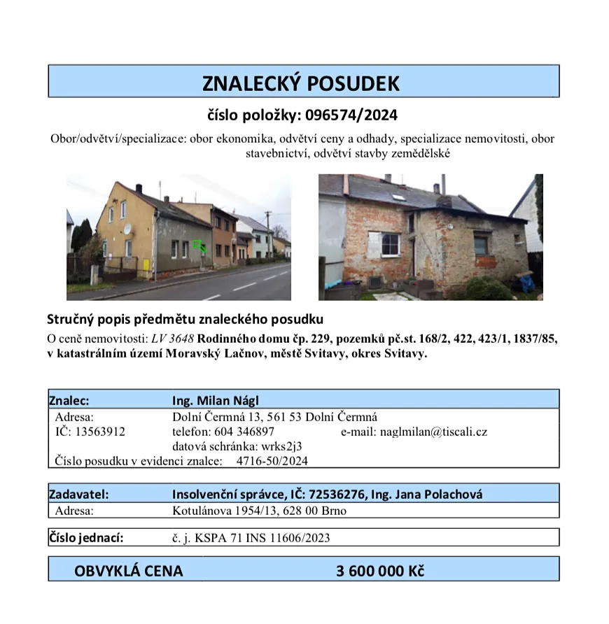 Zatím uveřejněné fotografie pochází ze znaleckého posudku (3.600.000,- Kč) z 11.12.2024.