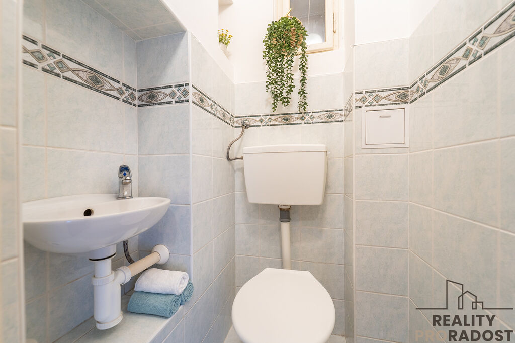 Uzamčená sklepní kóje a možnost využívat prostorné společné sklepní prostory a nádherný klidný zelený dvůr.