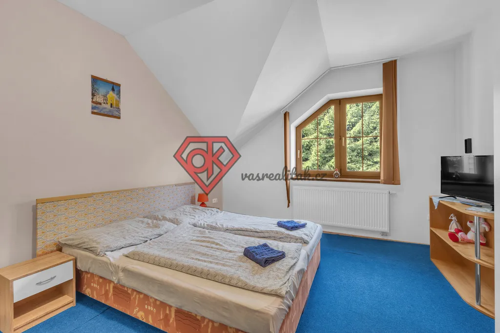 Hledáte investiční příležitost, která už teď přináší zisk? Tento penzion s osmi samostatnými pokoji, společenskou místností, bazénem, saunou, správcovským bytem a útulnou horskou atmosférou může být tím ideálním právě pro Vás.