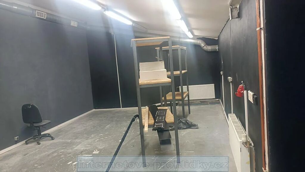 Výrobní hala (možno i jako sklad, vzorková prodejna apod.), 61 m, voda,elektrické topení, klimatizece, 220V, 380V s 3 park. místy v uzamykatelném dvoře, s přístupem 24/7. Součástí je i společná kuchyňka a WC. Příjezd větší dodávkou až k železným vratům, vhodné na tichou výrobu a skladování výrobků či jiného zboží - prostory nabízí soukromí, klidné místo a perspektivu dlouhodobého využití se snadnou dosažitelností v kteroukoliv denní i noční hodinu, snadnou dostupností dálnice a možností parkovat až 3 vozy v kteroukoliv dobu.