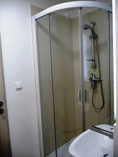 Hlavní místnost je vybavena širokým parapetem přes celou šířku místnosti, kuchyňskou linkou se spotřebiči - samostatná elektrická trouba s dvouplotýnkou, digestoř, lednice, pračka. Koupelna disponuje sprchovým koutem, umyvadlem se skříňkou, zrcadlem, el. topným žebříkem a toaletou. V chodbě je věšáková stěna. Vše nové po právě dokončené rekonstrukci. Solidní a funkční vedení SVJ.