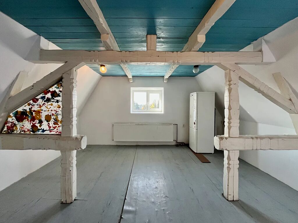 Světlá výška 2,5m v obytné místnosti, v nejvyšším bodě půdního prostoru 4,3m.
