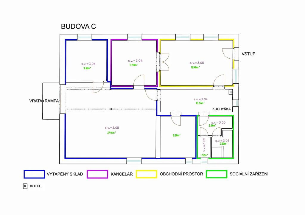 Budova C-obchod, sklad: užitná plocha 104 m2 počet podlaží 1NP
