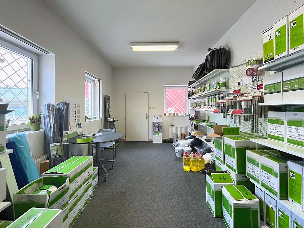 Hlavní plochy: obchod: 18 m2, kancelář: 12 m2, vytápěné sklady: 67 m2