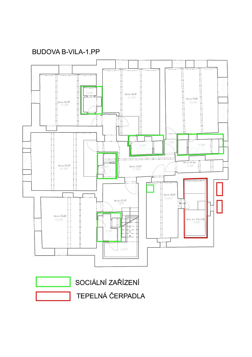 Budova B-vila: užitná plocha 567 m2 počet podlaží 1PP,1NP,2NP+PŮDA