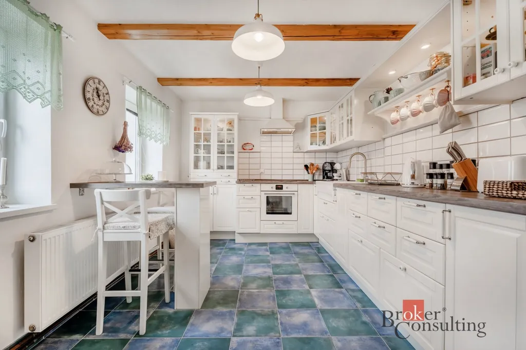 • Energie a sítě: vytápění je zajištěno kombinací krbu s výměníkem a elektrokotle, v patře je klimatizace a přímotopy, ohřev vody bojlerem, díky možnosti vytápění krbem se výrazně snižují náklady na provoz domu, což z něj činí úsporné a energeticky efektivní bydlení.