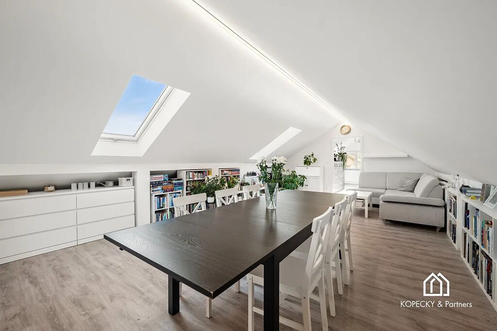 Byt nabízí 79 m² plně užitné plochy, což je pro dispozici 2+kk nadstandardní hodnota. Velkou výhodou jsou také podkrovní úložné prostory o velikosti přibližně 51 m², přístupné přímo z bytu. Celková podlahová plocha tedy činí 130 m², což majiteli poskytuje výrazně více flexibility než běžné byty této kategorie.