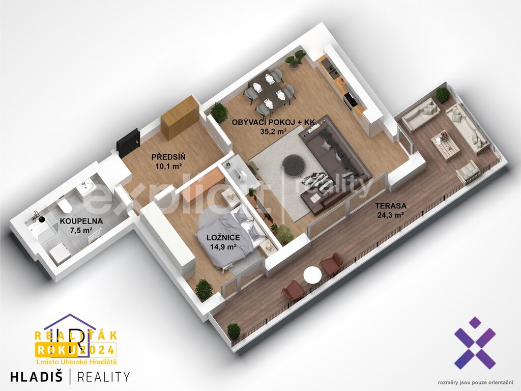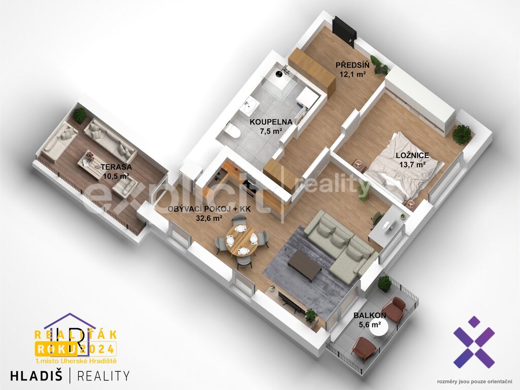 - balkon s terasou 16 a 24 m² – prostor pro relax i výhledy