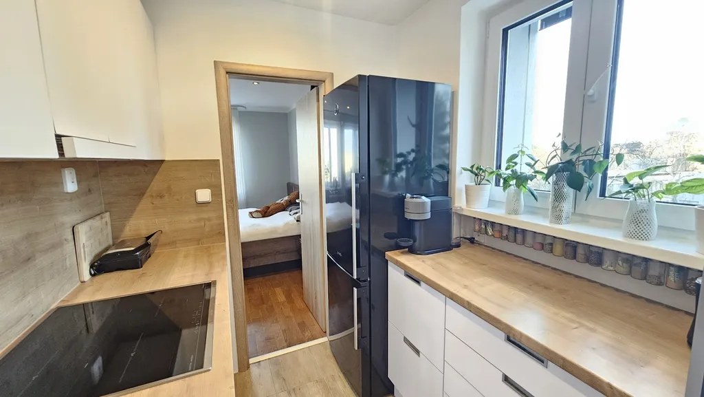 Nabízíme k prodeji mimořádně zdařile navržený byt 2+1 o výměře 55 m² v osobním vlastnictví v ulici Hrusická. Bytová jednotka je umístěna ve 3. patře modernizovaného, kompletně zatepleného panelového domu z roku 2024 s novým výtahem a přípravou pro venkovní žaluzie. Dům i samotná jednotka splňují vysoké nároky na současné bydlení, a to jak po technické, tak estetické stránce. Byt prošel v roce 2018 perfektní, koncepční a do detailu promyšlenou rekonstrukcí podle představ paní majitelky, při které kladla důraz na maximální efektivitu prostoru, dostatek úložných míst a praktické využití každého centimetru. Nejde o běžnou rekonstrukci – toto je byt, kde vše navazuje, dává smysl a působí esteticky i funkčně. O Obývacím pokoji se dá s nadsázkou říci že je multifunkční srdce domácnosti. Dominantou pokoje je kvalitně řešená sklápěcí postel integrovaná v nábytkové stěně, která umožňuje okamžitou proměnu obývací zóny v plnohodnotnou ložnici. Alternativou je pohodlný rozkládací gauč. Pod televizí se nachází další chytře skrytá úložná místa. Celý prostor působí harmonicky, vzdušně a nabízí vysokou variabilitu. Vedle pokoje se nachází designová kuchyň s maximálním vybavením. Kuchyňská linka je naprosto nadstandardní – komínová stěna s vestavnou troubou a mikrovlnkou, myčka na nádobí, pračka, sušička, promyšlené rozvržení skříněk a důmyslné členění úložných prostor. Kuchyň je navržena tak, aby byla nejen krásná, ale především extrémně praktická pro každodenní život. Koupelna působí moderním, čistým dojmem. Nabízí sprchový kout, elegantní umyvadlo a podsvícené designové zrcadlo. Toaleta je samostatná, což ještě zvyšuje komfort. Druhá obytná místnost slouží v současnosti jako dětský pokoj. Díky své dispozici nabízí příjemné světlo a dostatek prostoru pro postel, úložné části i pracovní koutek. Další přednosti bytu - okna na tři světové strany, tímto je byt po celý den nádherně prosvětlený, velká vestavěná skříň v chodbě. Tento byt vás okouzlí elegantními detaily, kvalitními materiály a nadčasovým řešením. K dispozici je v suterénu domu sklepní prostor.