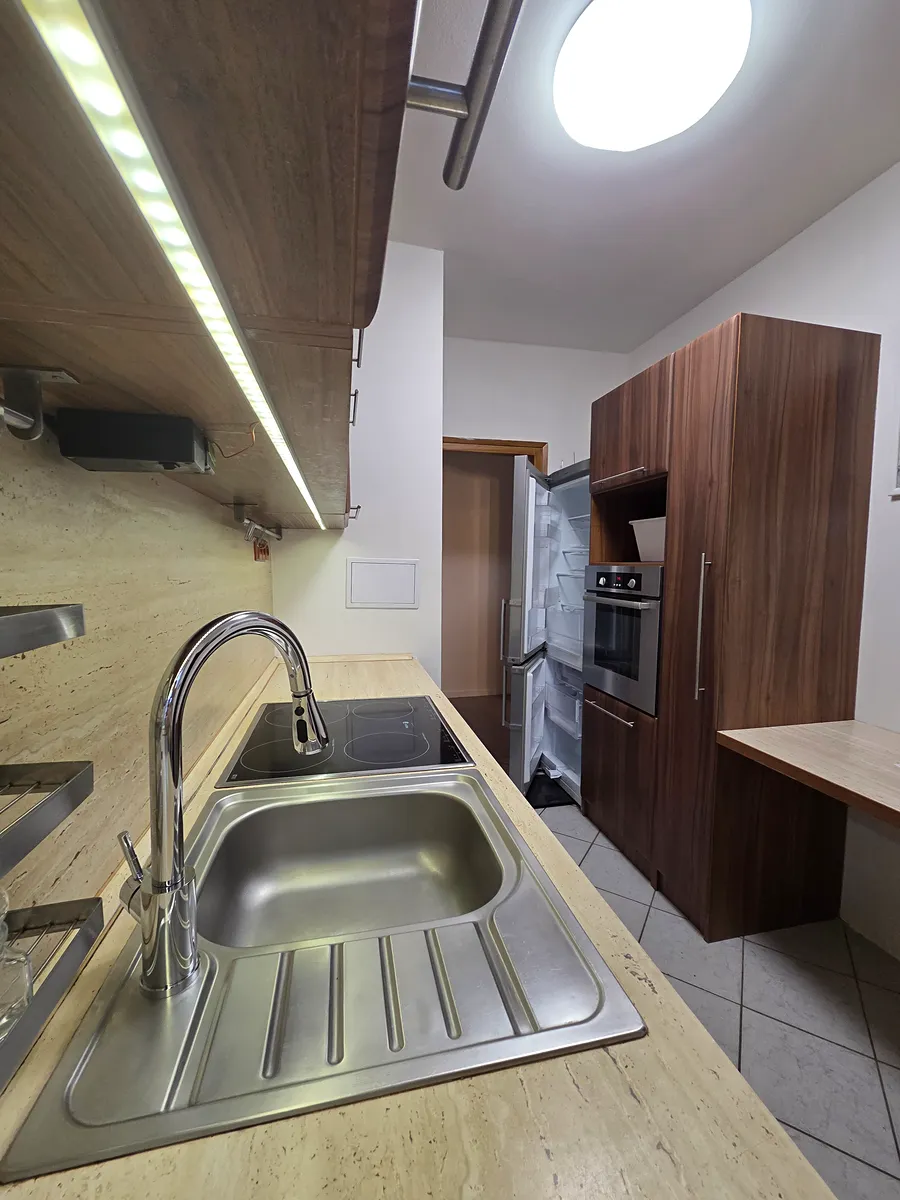 V bytě je zabudována vestavná šatní skříň. Kuchyňská linka je vybavena myčkou, lednicí vč.mrazáku, troubou.
