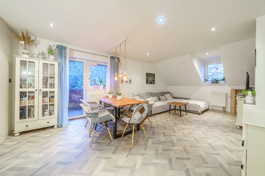 K bytu patří přístup k zahradě, která je ve společném vlastnictví a je ideální pro odpočinek, setkání s přáteli nebo rodinné posezení.