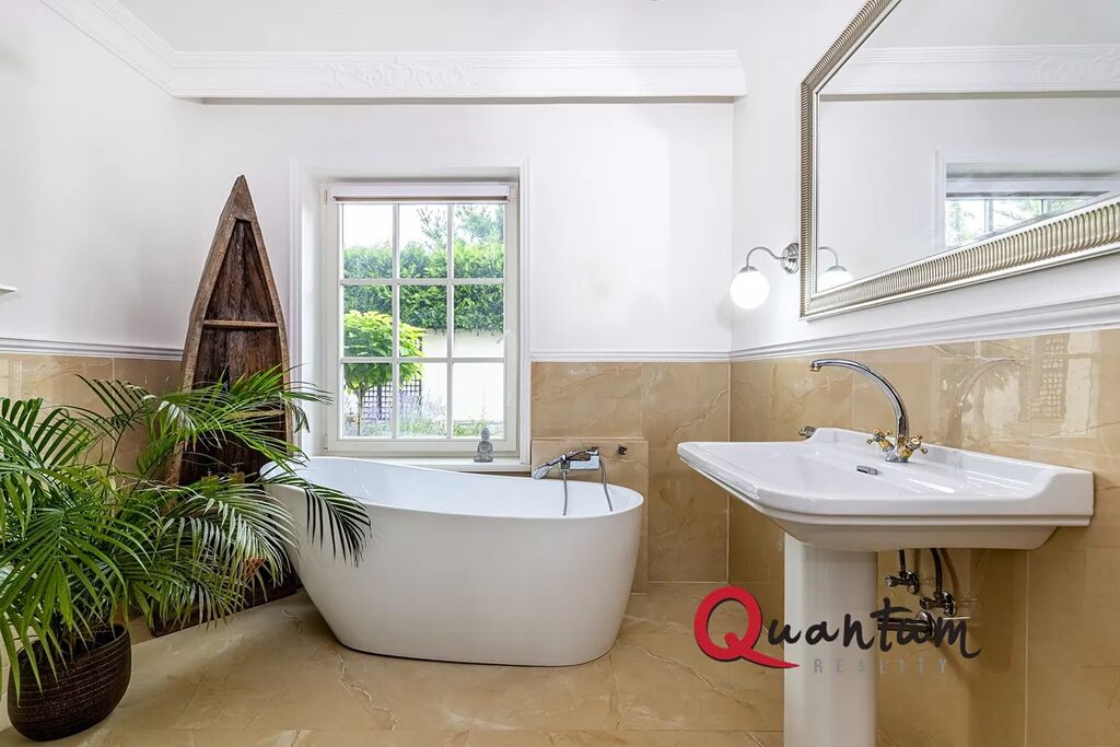 Kvalitní materiály a stylové provedení – fasáda v anglickém stylu, elegantní detaily a propracovaný interiér, který zachovává styl domu.