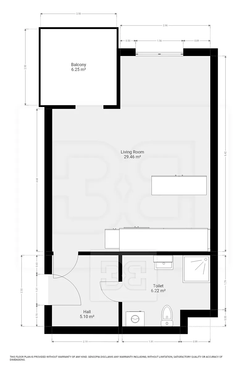 Byt je nevybavený a nabízí možnost zařídit si interiér dle vlastních představ. Dominantou je prostorná hlavní místnost s nadstandardně velkou kuchyňskou linkou v moderním designu. Kuchyň je vybavena vestavěnými spotřebiči, dostatkem úložných prostor a praktickým barovým pultem.