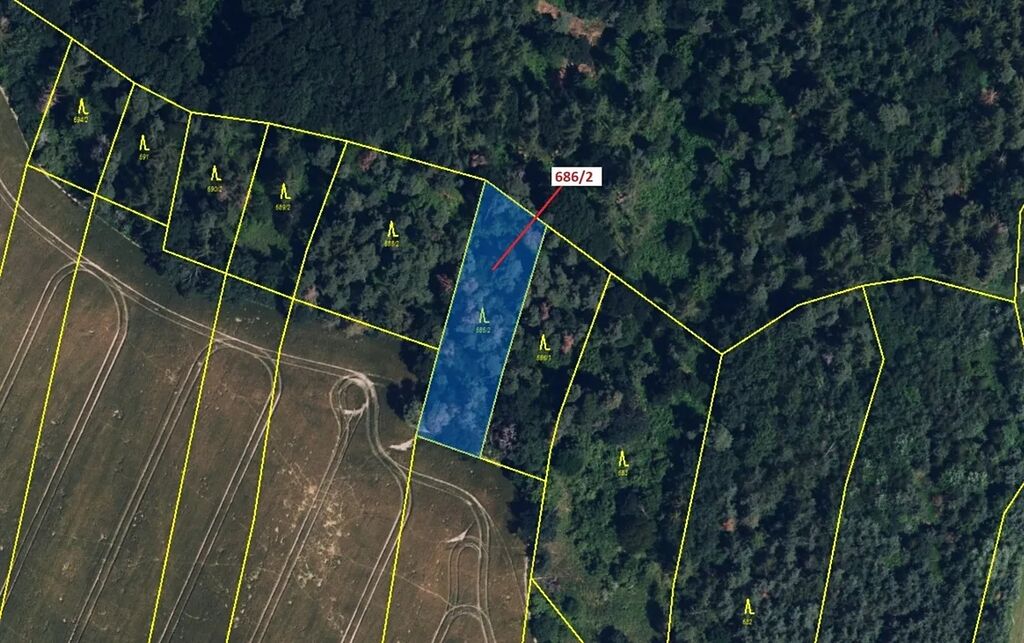 Lesní pozemek o výměře 1381 m2, parcelní číslo 686/2, podíl 1/1, katastrální území Přemyslovice, obec Přemyslovice, obec s rozšířenou působností Prostějov, okres Prostějov, Olomoucký kraj. Po těžbě.