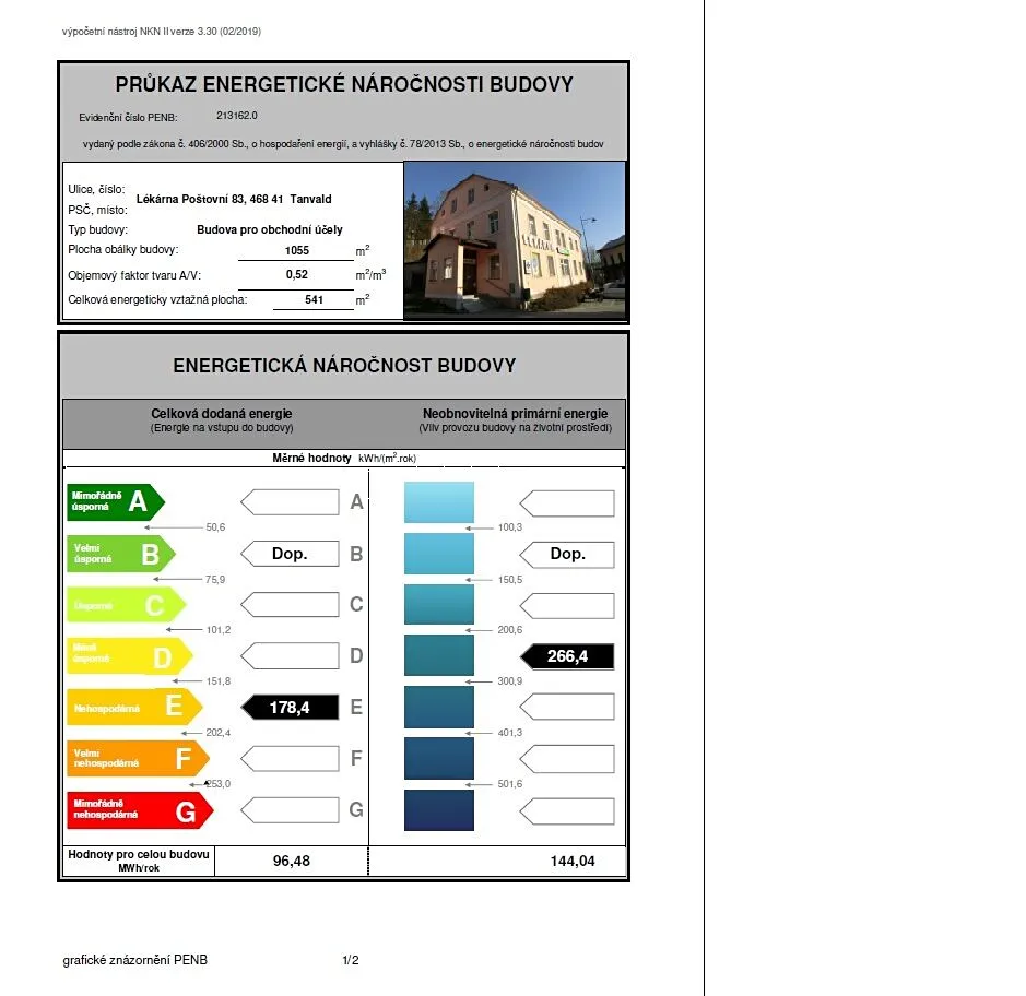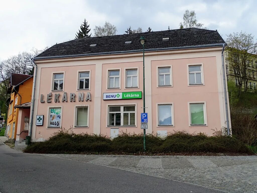 Jedná se o částečně podsklepený dvoupodlažní objekt s obytným podkrovím, velkou garáží a samostatnou garáží. Nemovitost je v současnosti v dlouhodobém pronájmu spol. BENU. V přízemí domu je umístěna lékárna se zázemím pro výrobu a skladovaní léčiv, dále kanceláře a sociální zázemí. Z přízemí vede schodiště do dvou sklepních prostor s kamenným klenutým stropem. Do druhého nadzemního podlaží lze využít výtah nebo kamenné schodiště. Ve druhém nadzemním podlaží je umístěno šest skladů, sterilní místnost, šatna, kuchyňka, sociální zázemí úklidová místnost. S nájemcem je možná dohoda o uvolnění tohoto podlaží, které lze přestavět na bytové jednotky, nebo kanceláře (nutno však vybudovat venkovní schodiště). V podkroví jsou umístěny dvě místnosti a půdní kóje. I tento prostor je vhodný pro půdní vestavbu. Zvenku je přístupná prostorná garáž a plynová kotelna. K nemovitosti náleží také parkovací plochy před objektem v ul. Poštovní, tak v SV části před samostatnou garáží.