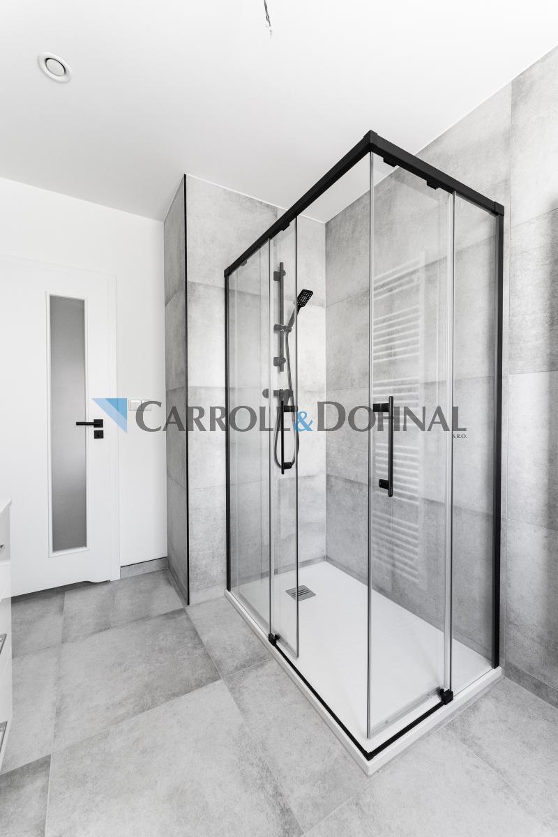 V bytě jsou dřevěné podlahy, koupelna v moderním designu má sprchový kout, výhodou je samostatná toaleta s umyvadlem.