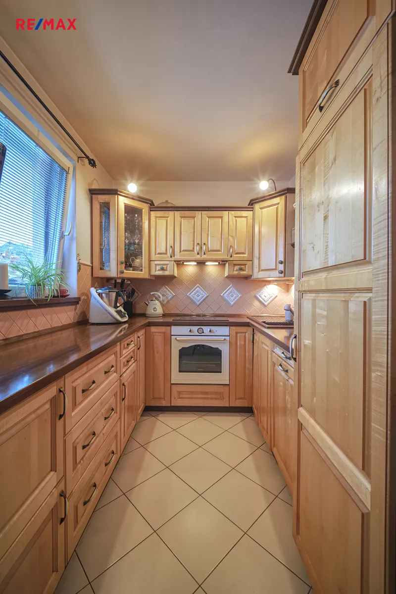 Součástí pozemku je zahrada o výměře 360 m² s bazénem 5 × 3 m s protiproudem, skleníkem a dvěma přístřešky vhodnými na nářadí či zahradní techniku.