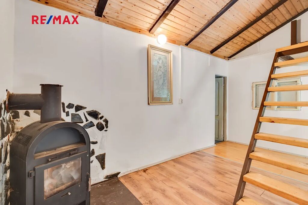 - hlavní obytný prostor s kamny a přístupem do podkroví,